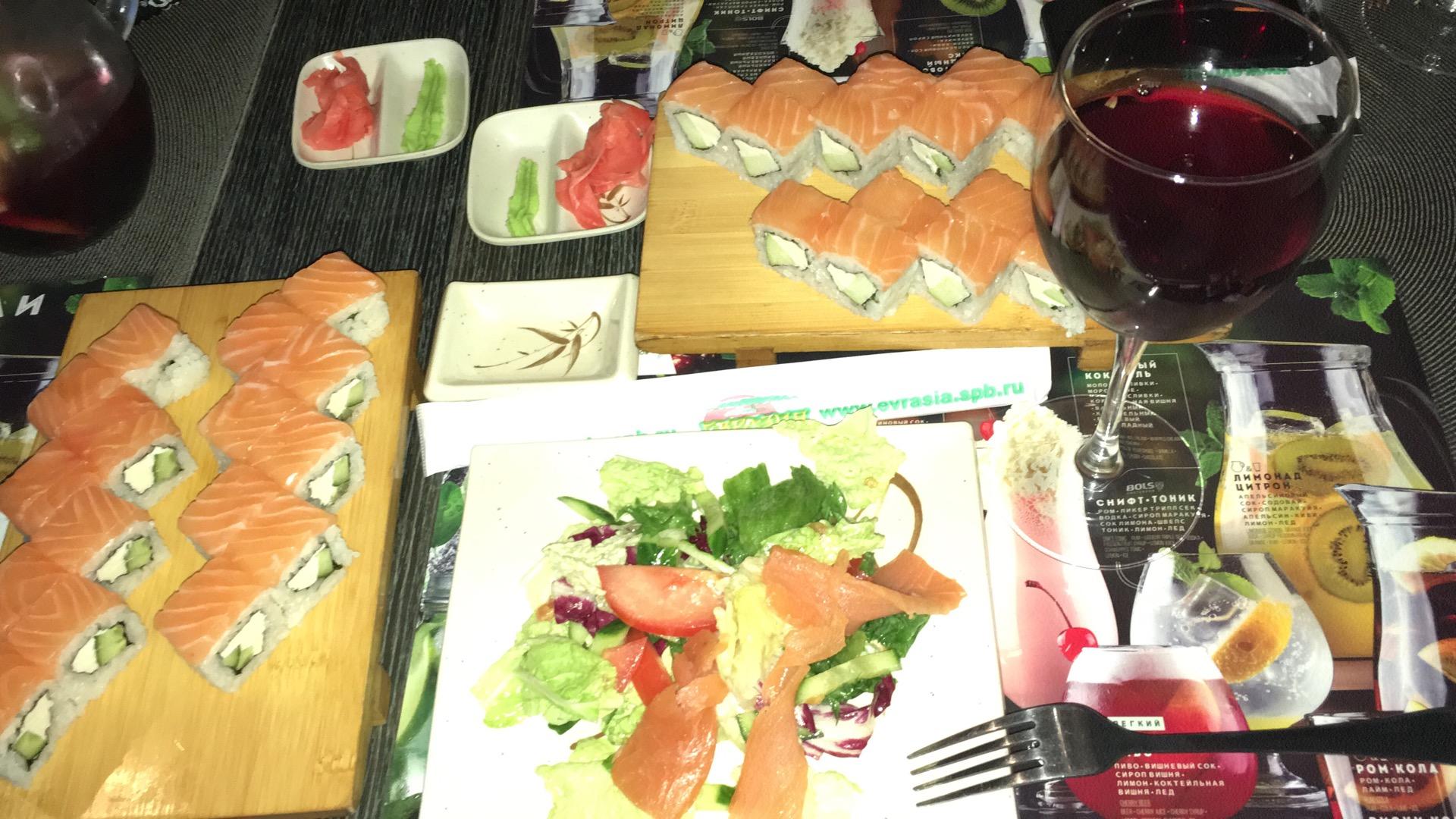Сеть ресторанов и суши-баров "Евразия" (Chain of restaurants and sushi-bars Evrasia) работает с 2001 года и насчитывает более 130 ресторанов в России. Это неизменное качество ваших любимых суши и роллов в японском меню. В ресторанах представлена узбекская, восточная, мексиканская, европейская, русская кухня. Любители итальянской кухни могут оценить пицца меню. "Евразия" предлагает уникальные акции, скидки и предложения для предъявителей дисконтных карт "Евразия Bonus".