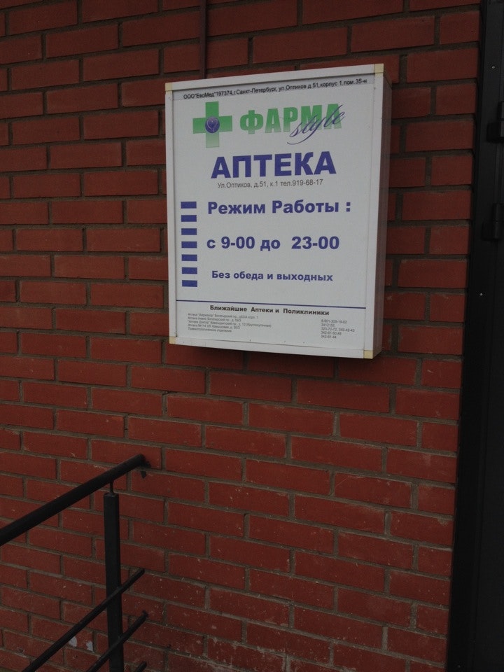 ⚕ Адрес, телефон, часы работы аптеки «Фарма style».