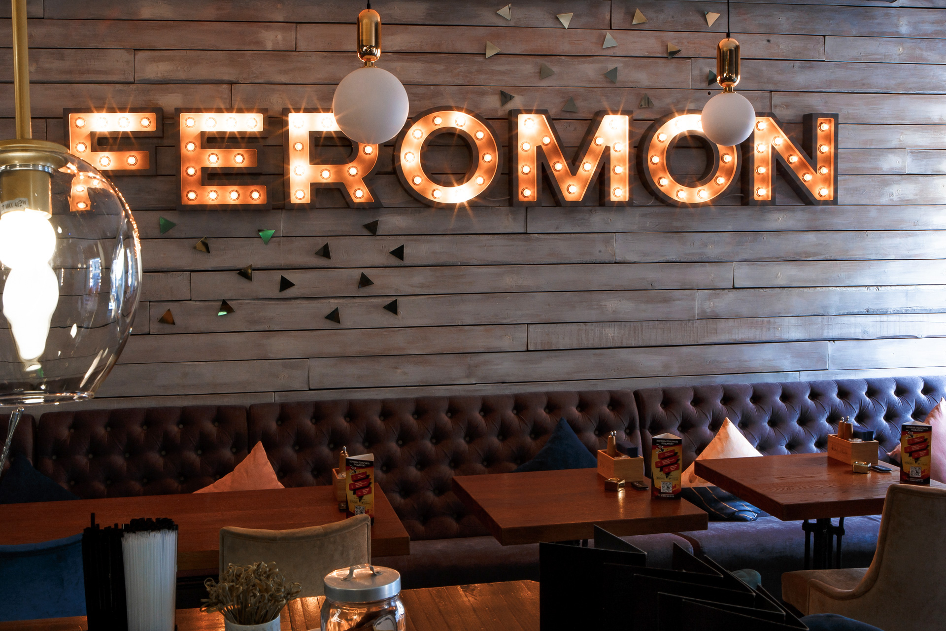 Feromon zhukovskogo 22 - уютная локация в стиле авангард! Концепция интерьера и атмосферы данного пространства отчасти передает внутренний мир и взгляд на кальянную культуру современности. Авторская кухня, широкая барная палитра и фирменные дымные забивки наполнят Ваш отдых стопроцентным удовольствием.