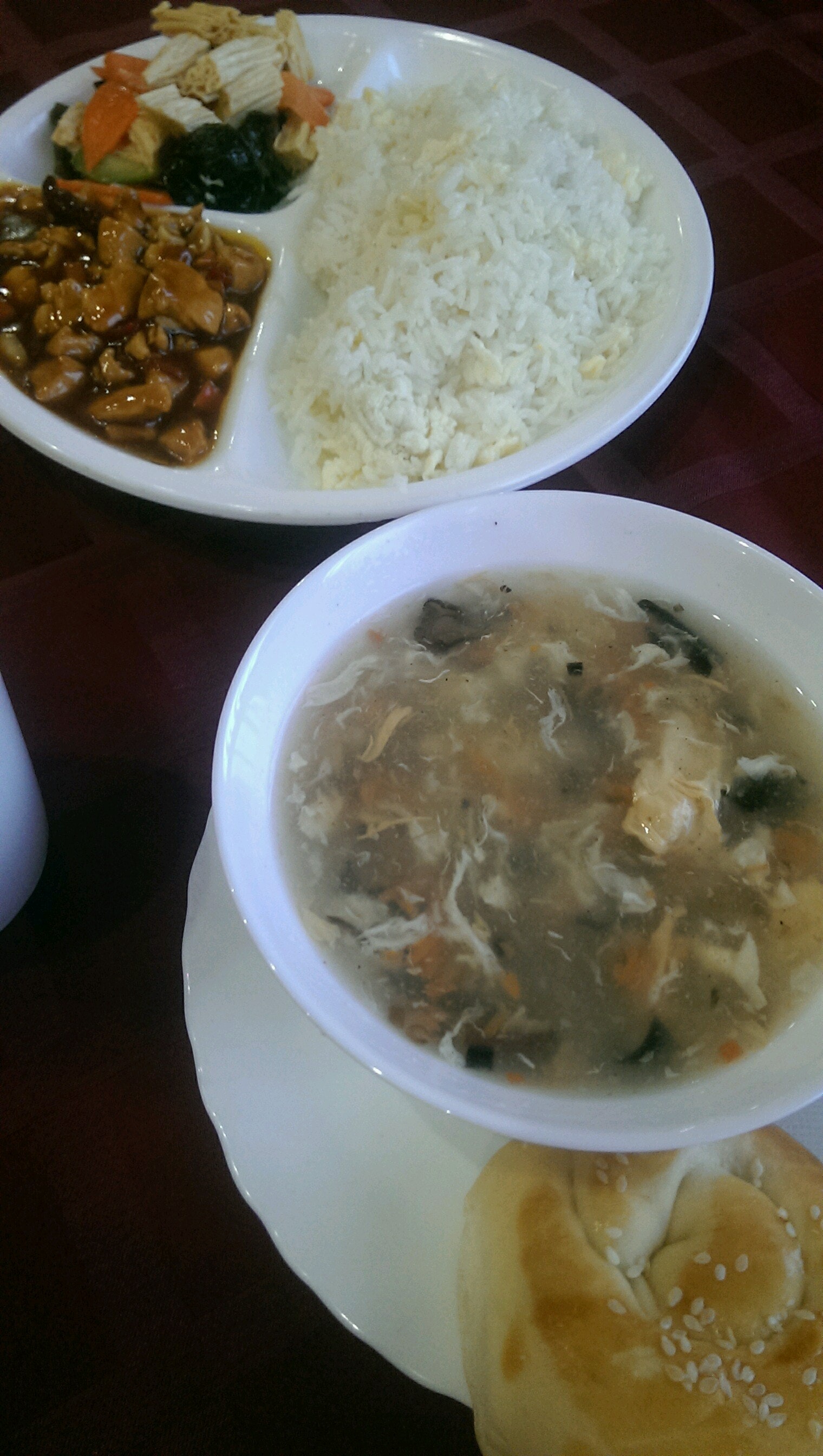Порции, традиционно для китайцев - большие. Два человека наедятся любым горячим и двумя порциями риса. Вкусный морс. Вечерами совсем немнонолюдно, работают до 11
