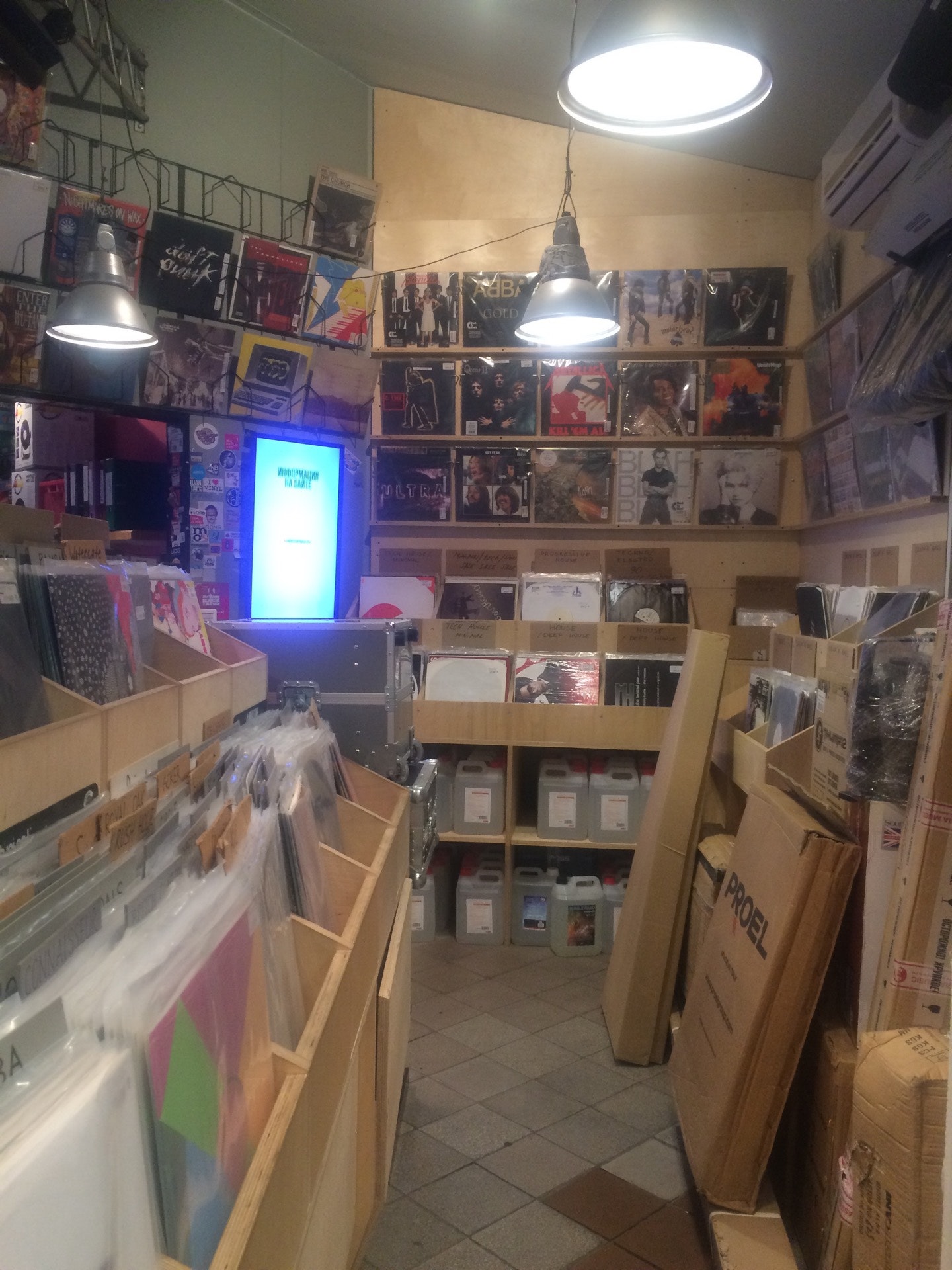 разнообразный выбор винила, много андеграунда, мало мейнстрима. оплата только наличными