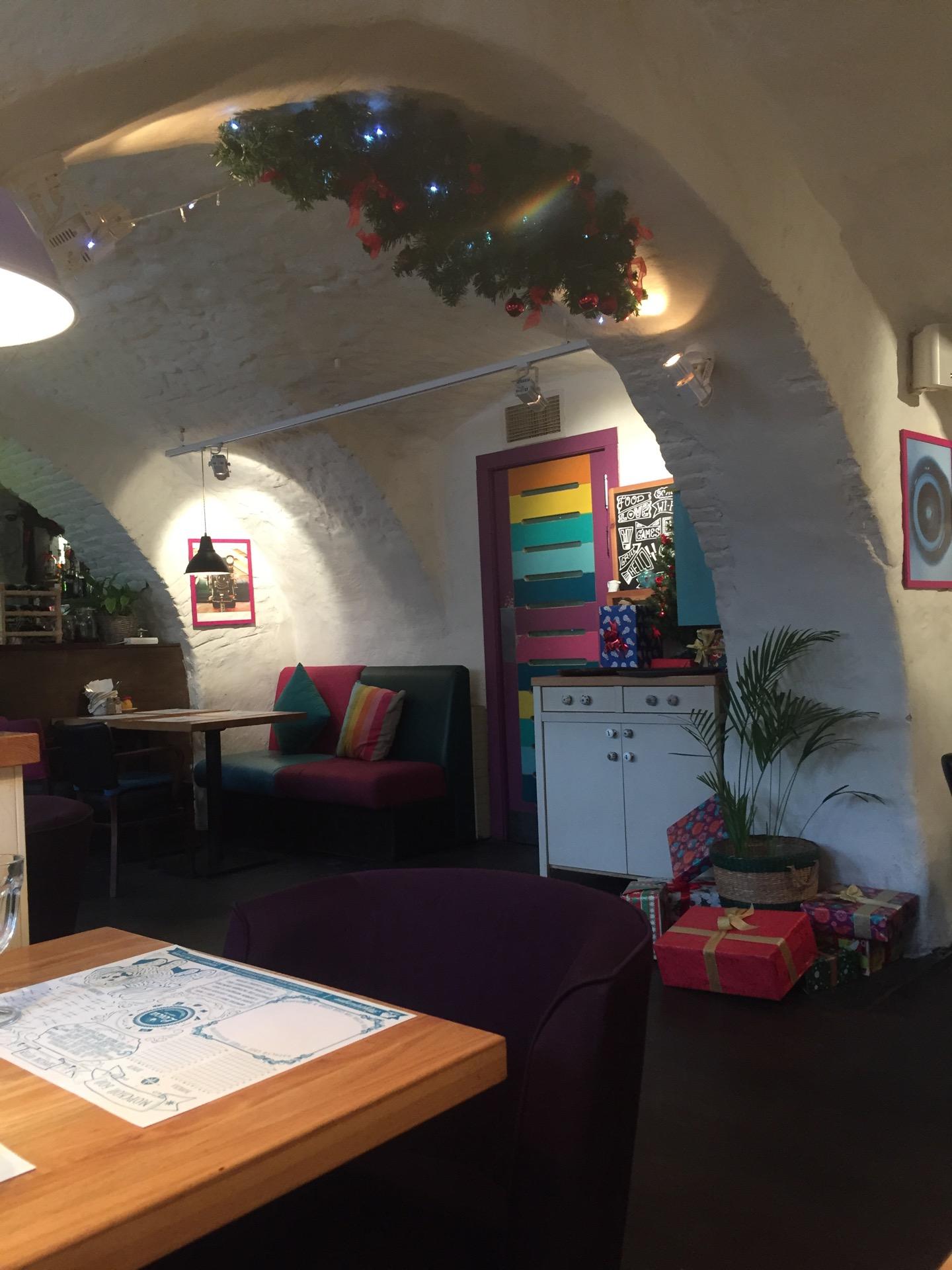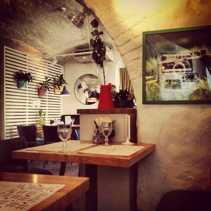 Приятный интерьер,поднимает настроение.Вкусный паштет.Пасту с курицей и песто подали холодной и сухой,а на дне тарелки был волос.Больше ни ногой туда.