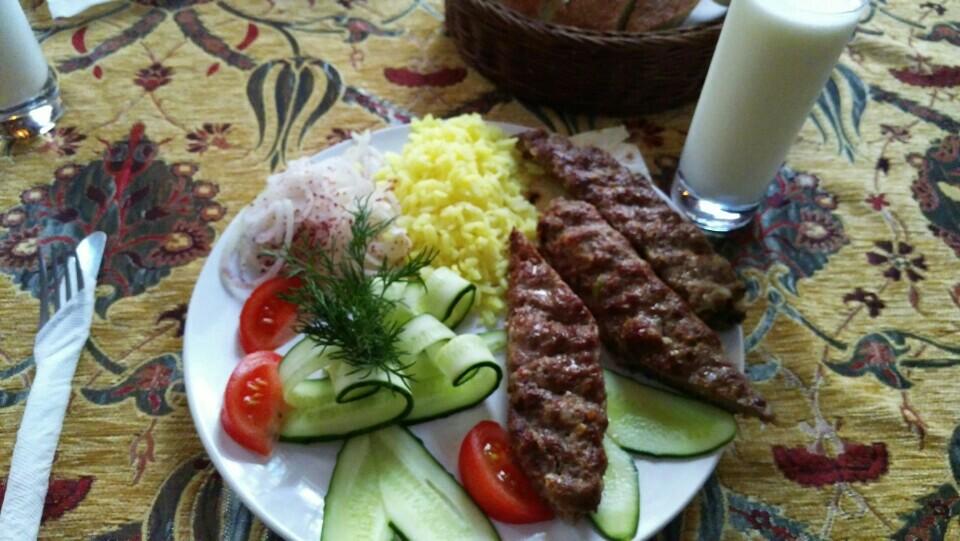 Искандер не похож на Искандер в Турции. Тем не менее очень очень вкусно ! Порция большая, стоит 380 руб, айран 80 руб. На фото чуть больше половины.