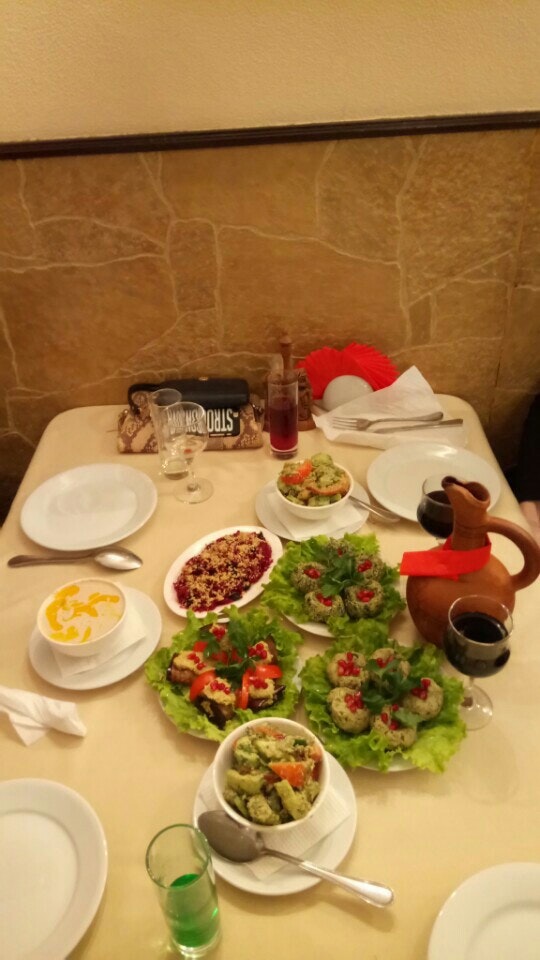 Очень вкусно! Голодными не останетесь!Попросите официанта предложить вам блюда, если сомневаетесь в выборе. Глаза разбегаются. Жаль, что маленький зал. Обязательно нужно бронировать заранее.