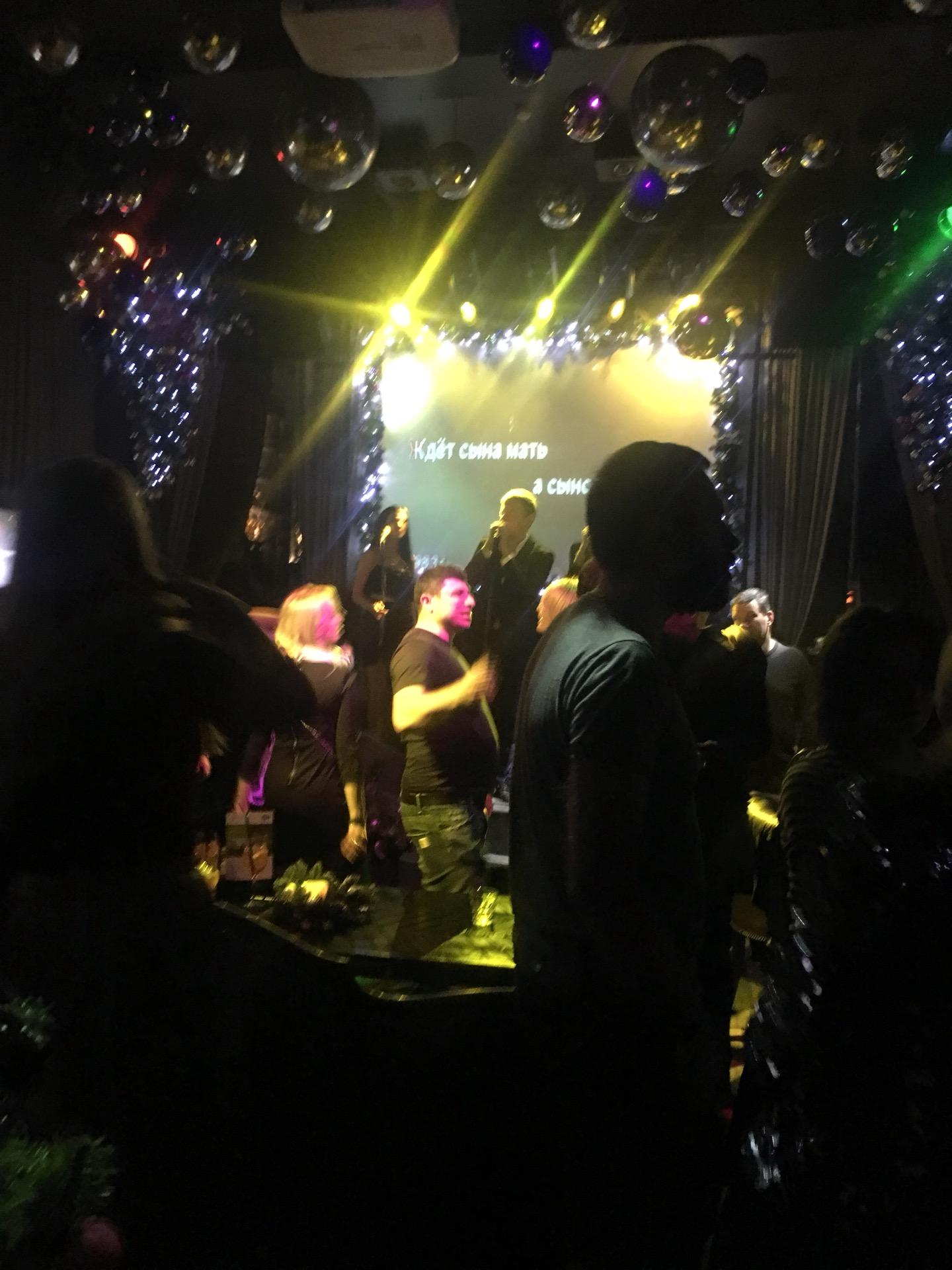 Очень громко, хотя когда поешь то звук хороший , очень накурено .... Как в тумане ..... Хороший ведущий !!! Вход бесплатный , но за каждую песню нужно заплатить 600 р., кальян очень дорогой 3000р.
