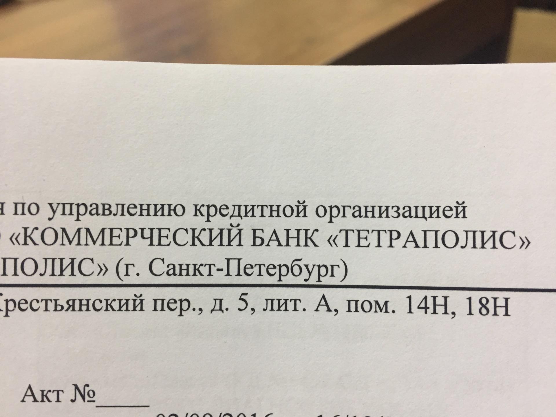 💰 Адрес, телефон, часы работы банка и 1 отзыв о «КБ ТЕТРАПОЛИС».