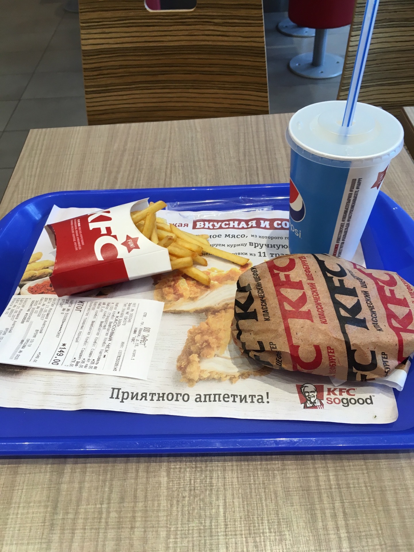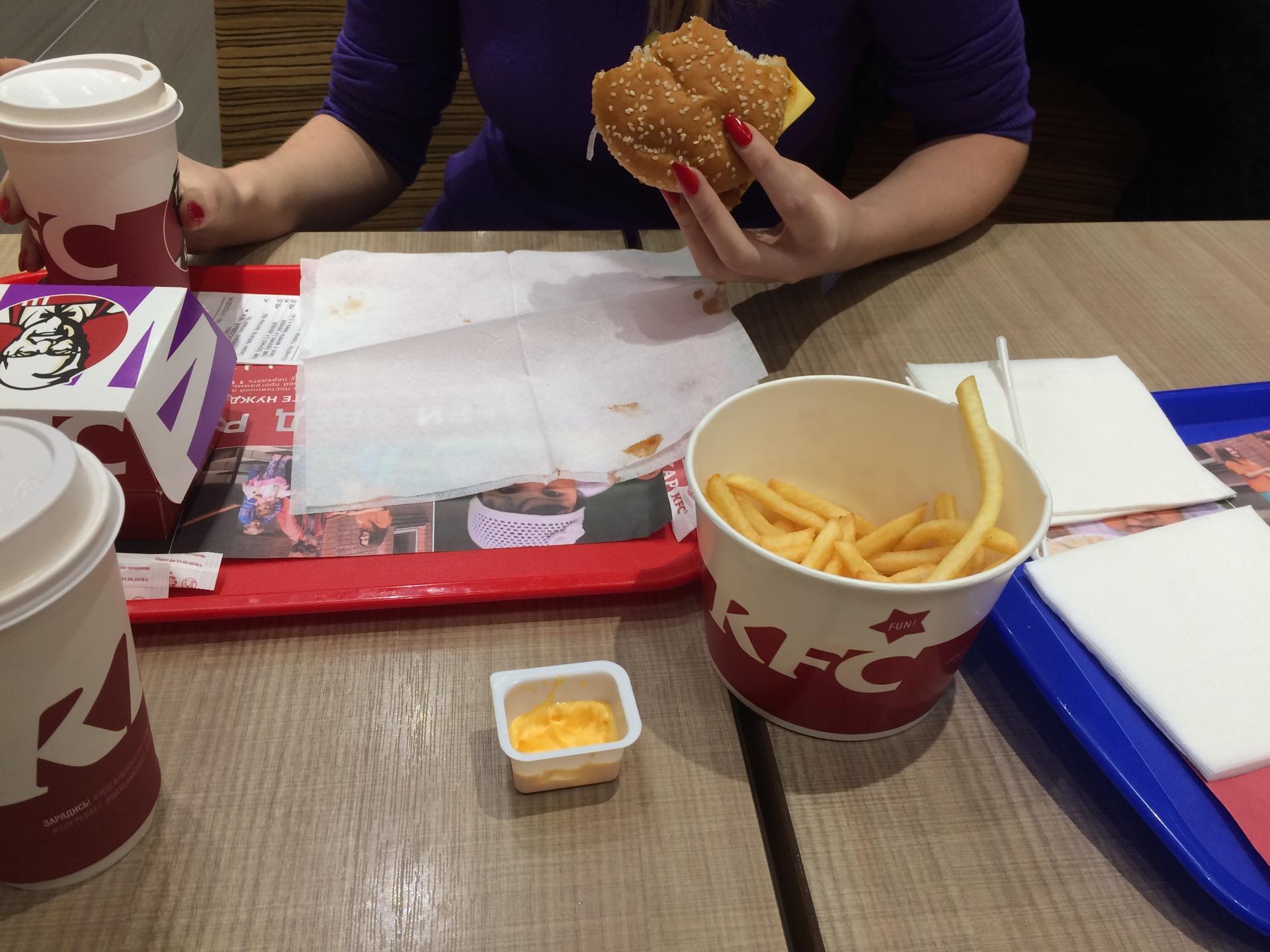 Просторный и уютный зал. Ненавязчивая музыка и вежливый персонал. KFC - ван лав