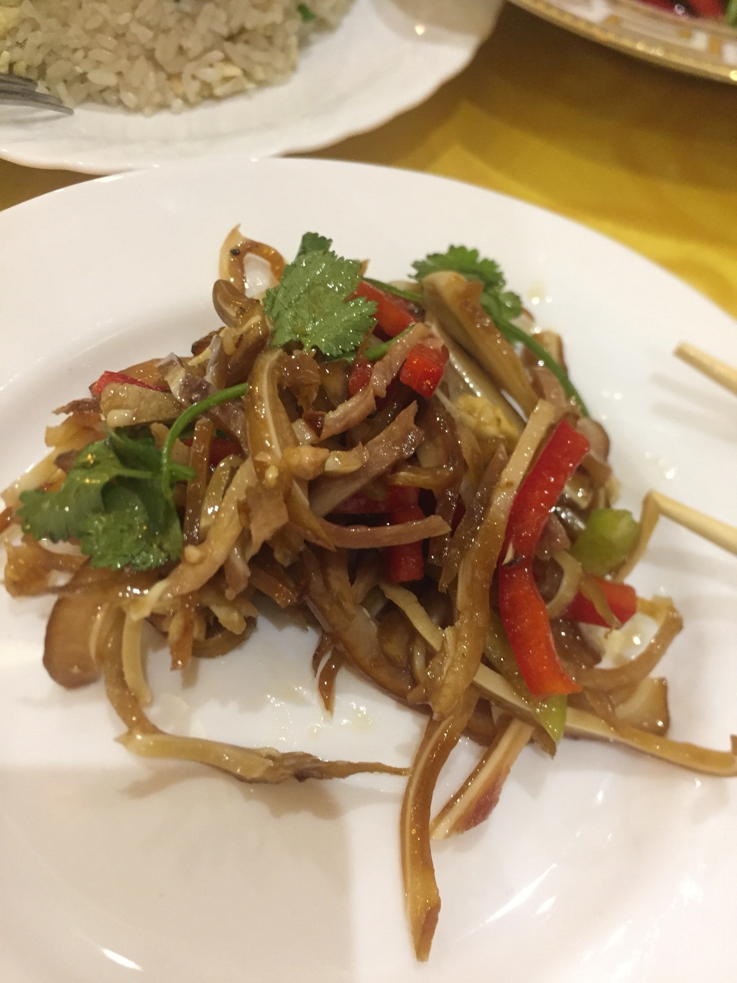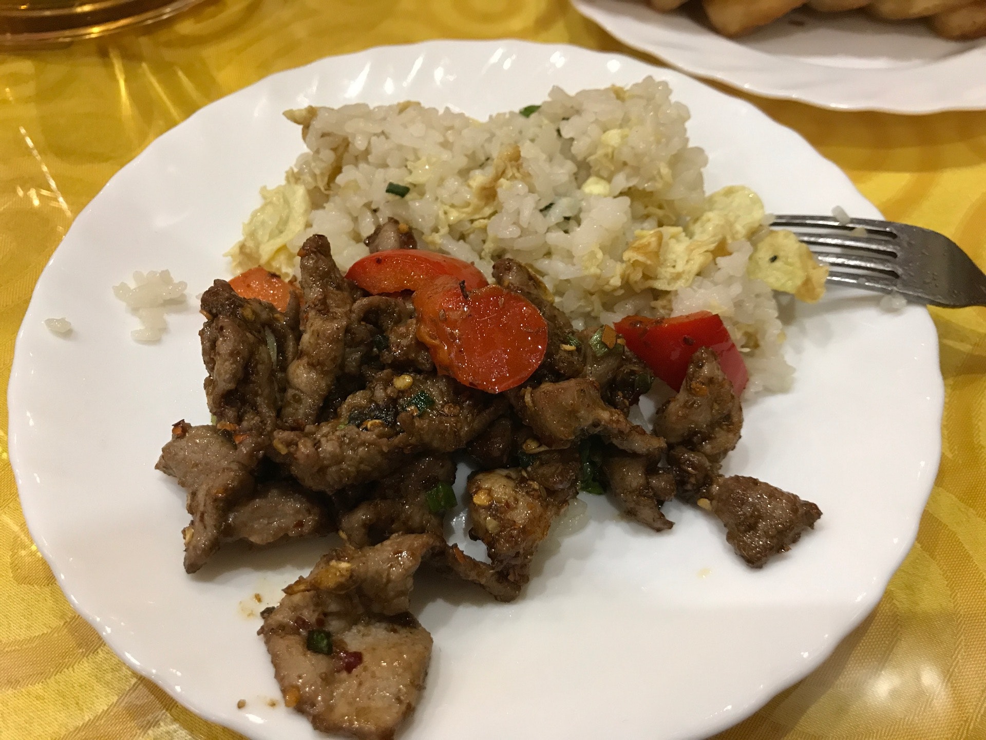 Группы китайцев идут одна за другой. Суматоха, неуютно. Еда не радует – свинины мало, кляра много, в древесных грибах полно чеснока. При оплате заметил, что в счёте оказалась лишняя порция салата.