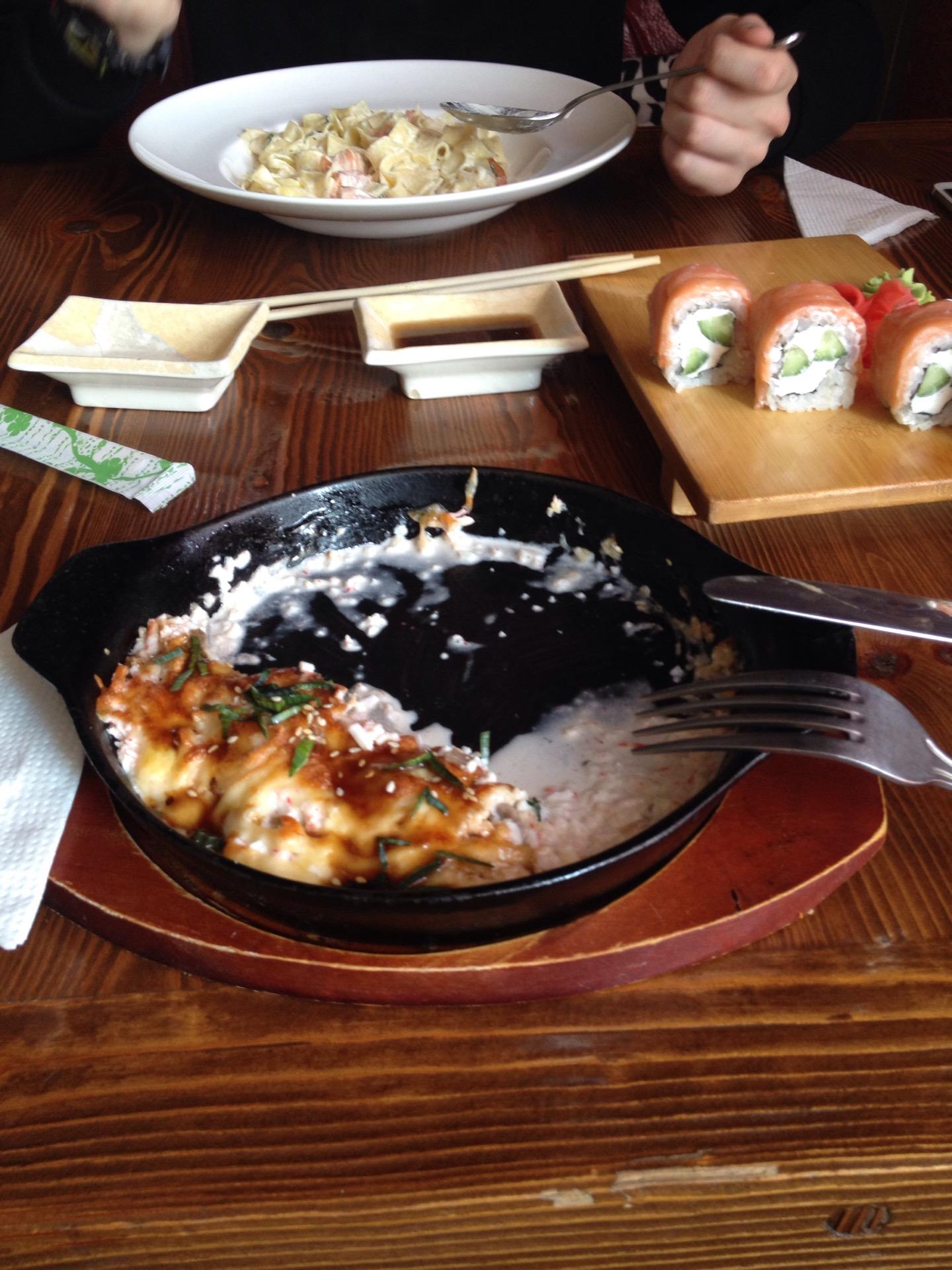 Очень долго готовят суши. К тому же, не всегда умело: разваливаются(((