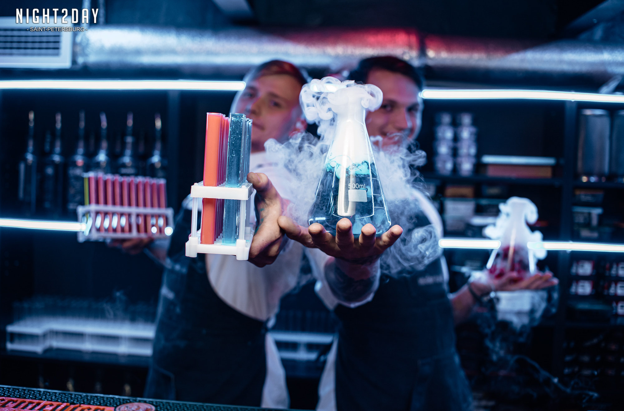 Самое новое и огромнейшее четырёхэтажное заведение сети химических баров 31CN: необычная подача коктейлей в пробирках и дымящихся колбах с сухим льдом, куча неоновых вывесок и неоновых граффити на стенах, столы на большие компании, отдельный зал с танцполом, столы со шторками, можно сделать много крутых фото, провести здорово вечер, отпраздновать свой день рождения, есть много акций, это будет незабываемое время и опыт! Не каждый же день удаётся попить из пробирок!