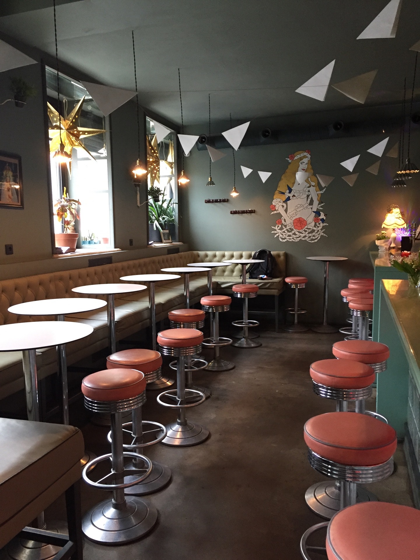 Эклектичное место - здесь тебе и супер вкусные Бургеры 🍔, и парикмахерская,и чаи с кофе, и музыка разных стилей, и авторские шоты! Но это работает, атмосфера отличная!!