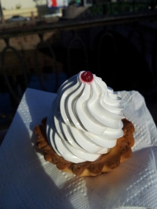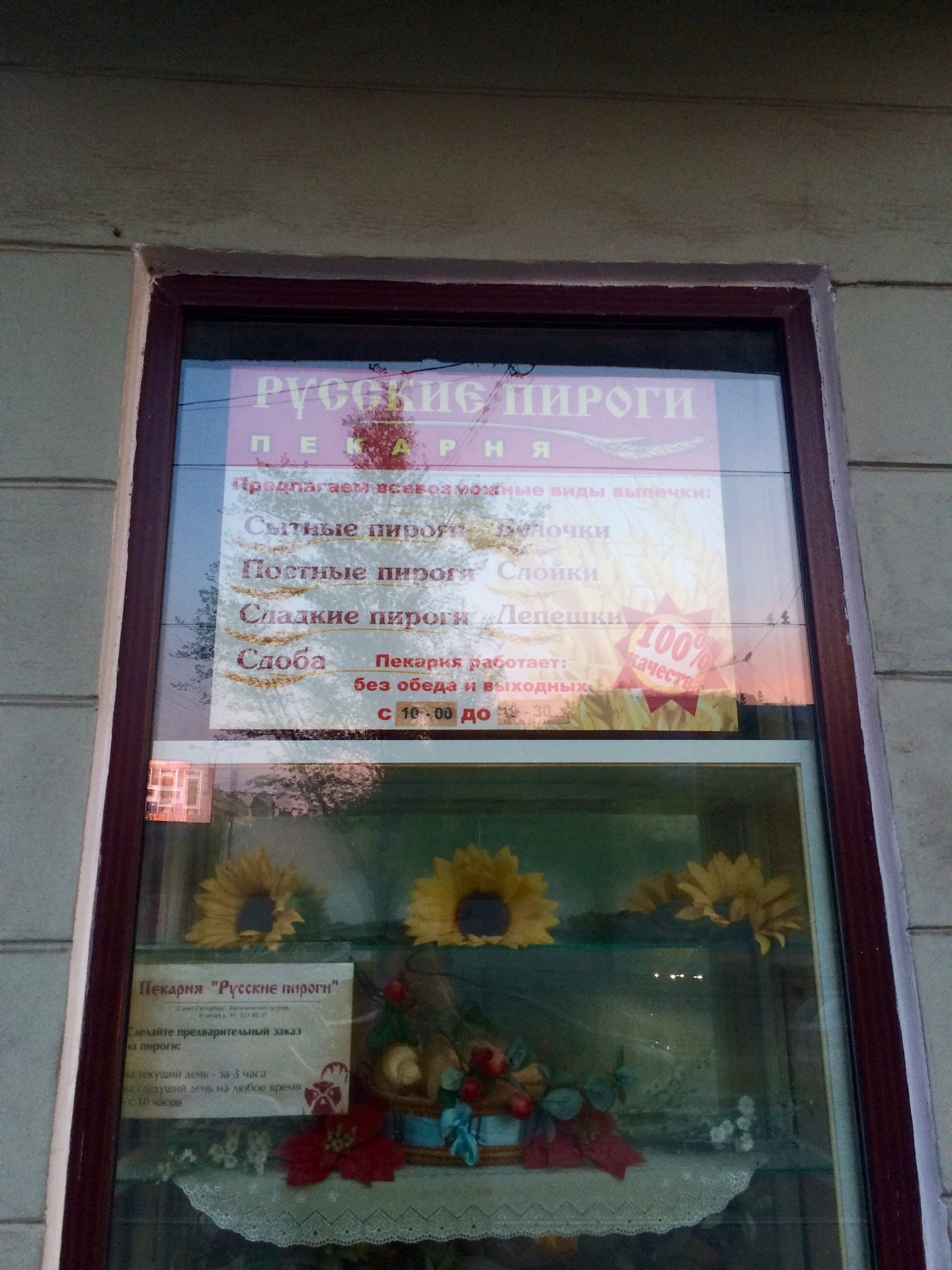 Привлекательная витрина с искусственными цветами и шалями. А вот пироги так себе: толстое тесто и отдают маргарином.
