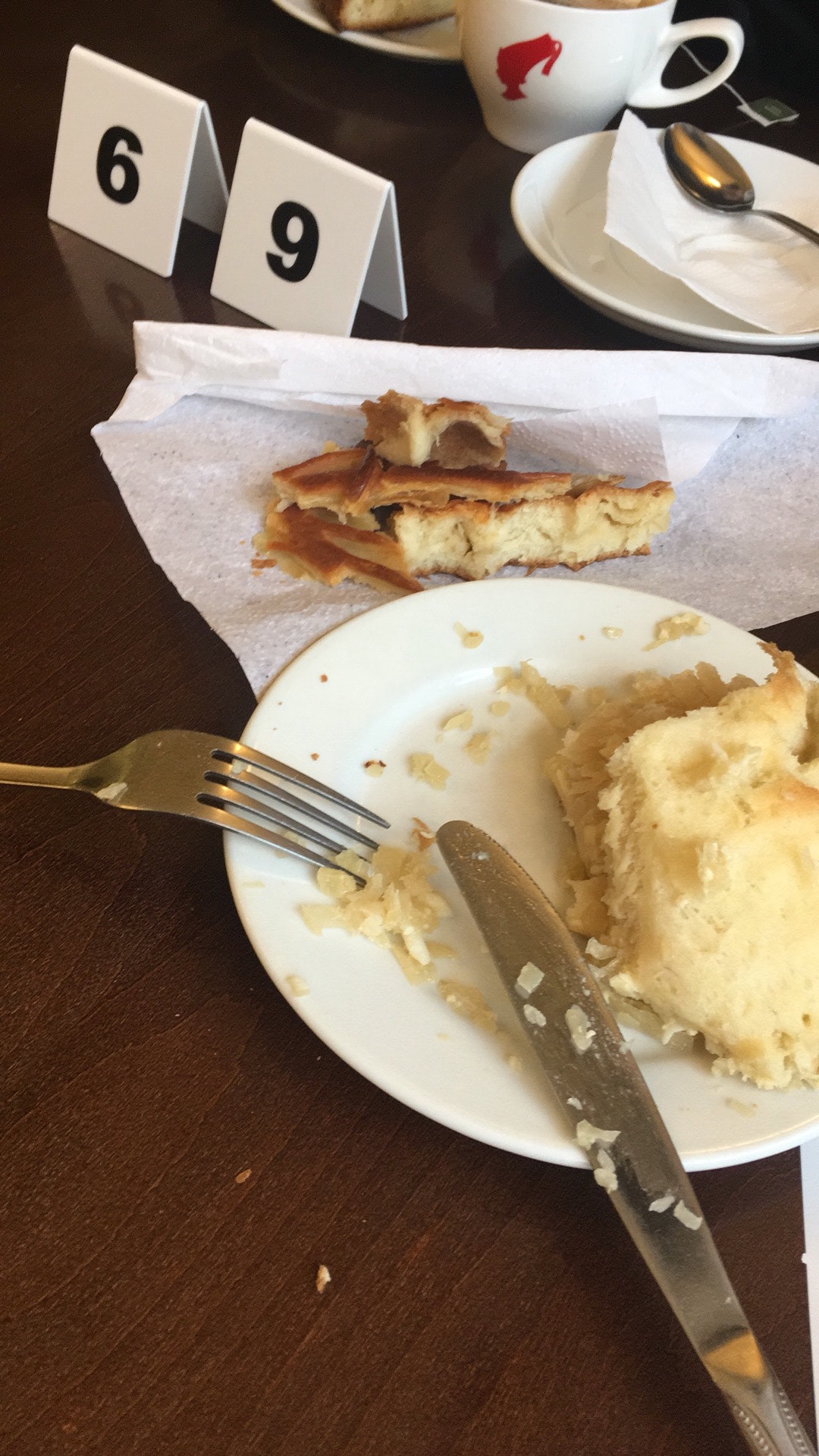 Пироги были уже изрядно постоявшие. Не понятно зачем так много официантов, на такое маленькое количество посетителей. Лучше сделать две кассы.