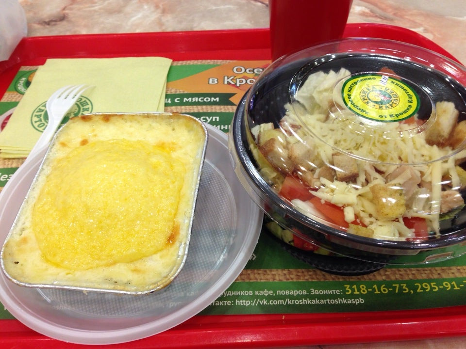 Если вы привыкли жить в ускоренном темпе, то сама идея быстрой еды для вас не должна быть в новинку. Для тех, кто предпочитает вкусно и быстро покушать в перерыве между делами, ресторан быстрого обслуживания Крошка картошка предлагает ряд блюд быстрого приготовления по умеренным ценам. Еда готовится таким образом, чтобы ее удобно было взять с собой. Цены на еду здесь низкие. Для вас и вашей компании повара приготовят блюда русской кухни. Тут же возможно подключиться к WIFI, выбрать бизнес-ланч из отдельного меню, воспользоваться предоставляемой парковкой, заказать еду с доставкой. Всех гостей ждут по адресу: проспект Энгельса, 154 лит А. Ехать нужно до станции Парнас. Для вас заведение работает Пн-вс: 10:00 - 22:00.