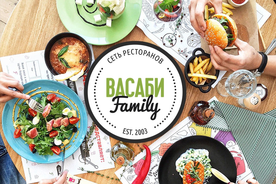 Обновленный семейный ресторан сети Васаби/Розарио с новым ярким эко-интерьером, большой детской комнатой и меню в формате "мультикухня".