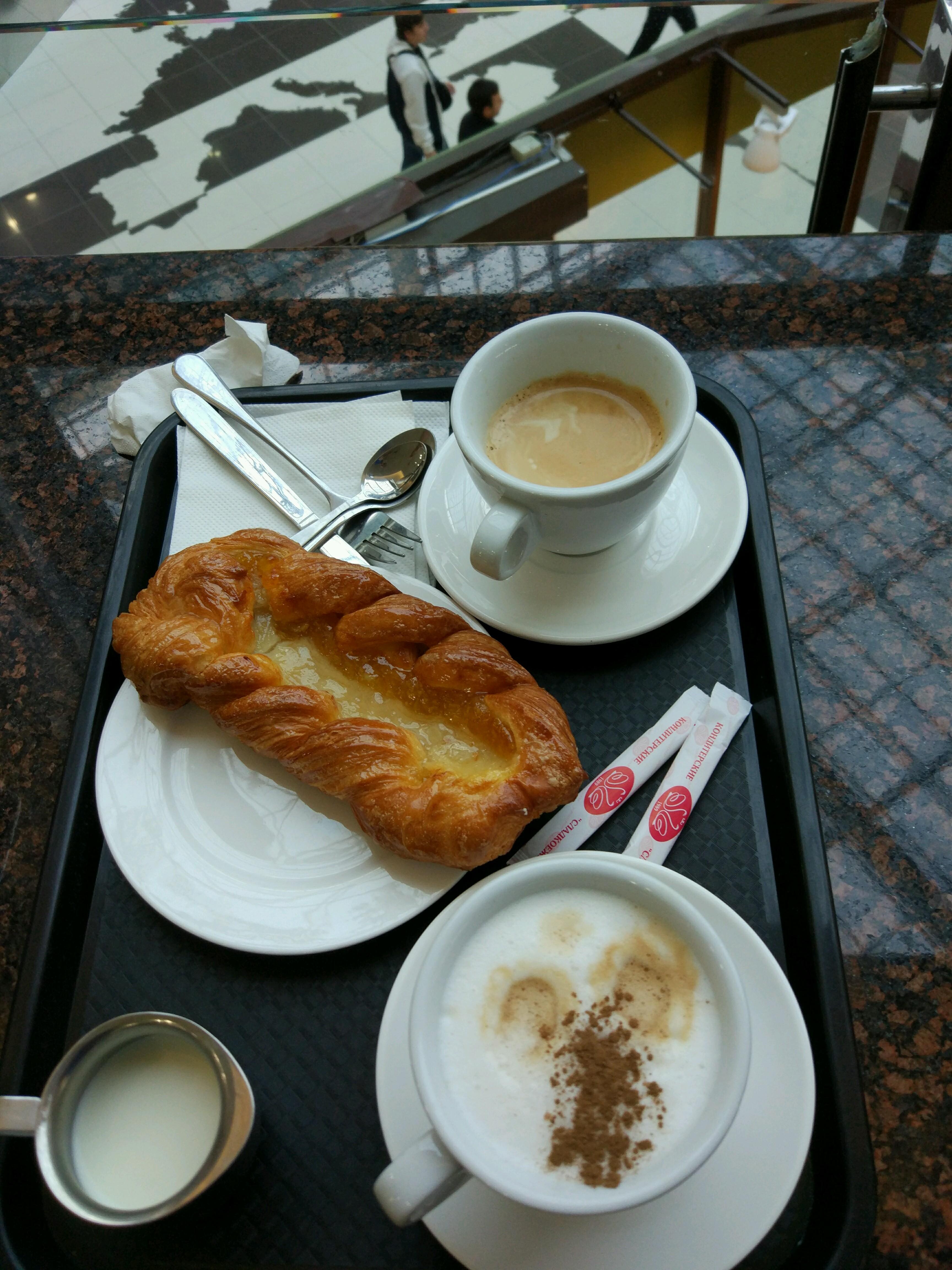 Латте здесь готовят так как я люблю, много много молока и совсем немного кофе) Торт " Легкий шоколад" объедение! 😋