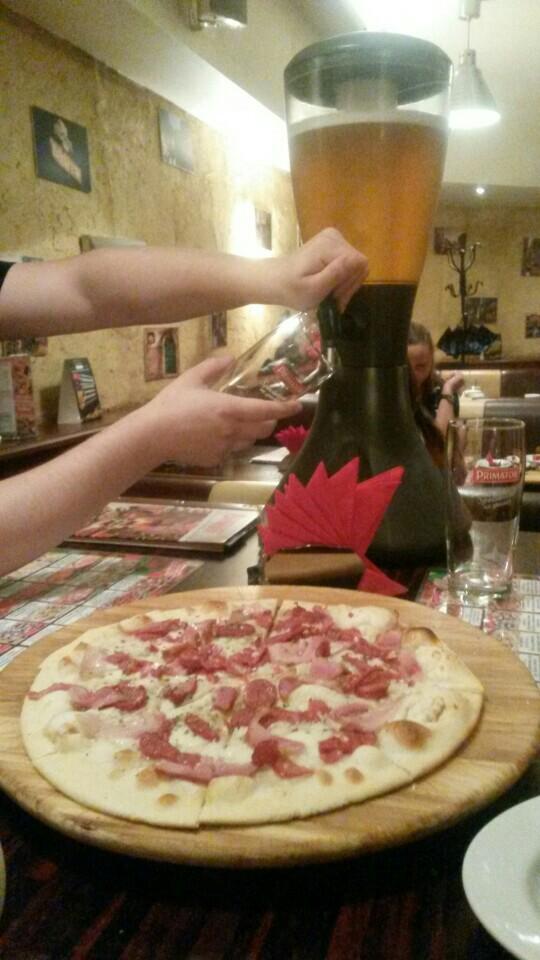 Классный бар! Самовар пива - решает. Правда тесто пиццы настолько тонкое, что при желании его можно продеть через кольцо, лол.