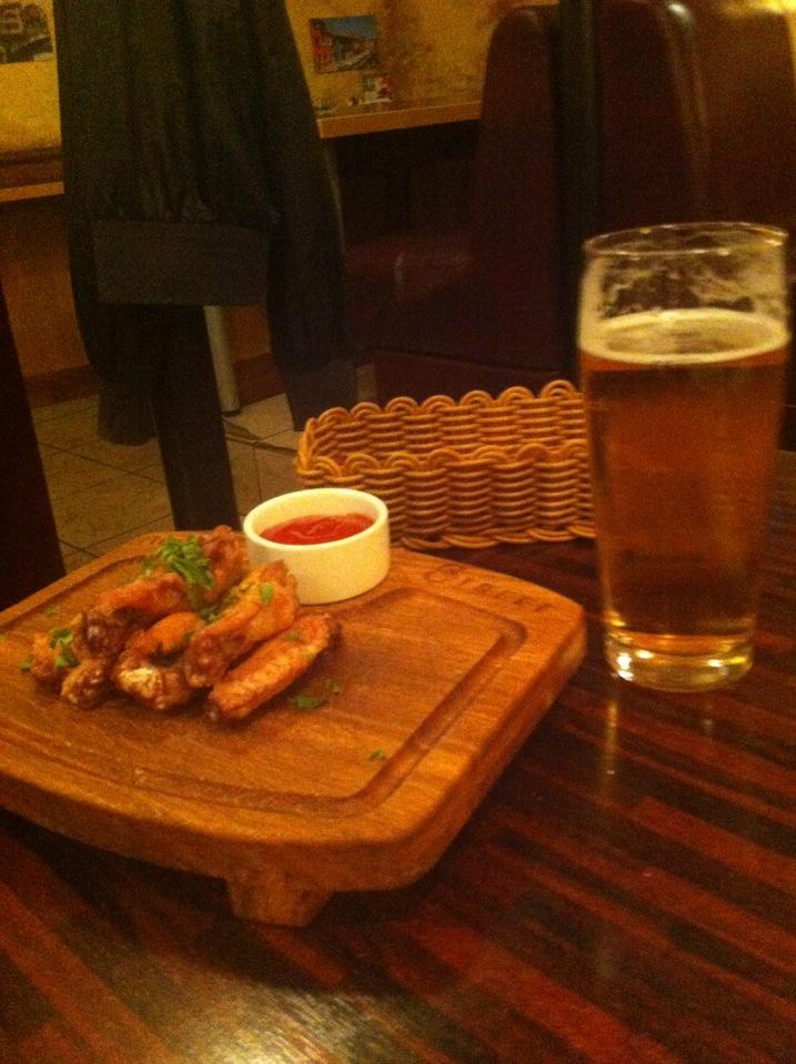 Забрели случайно в этот бар,были очень голодные и хотели вкусно поесть))ребрышки и картофель с грибами были изумительные,правда рёбер было не много(а вот пицца не удивила,ожидали большего)