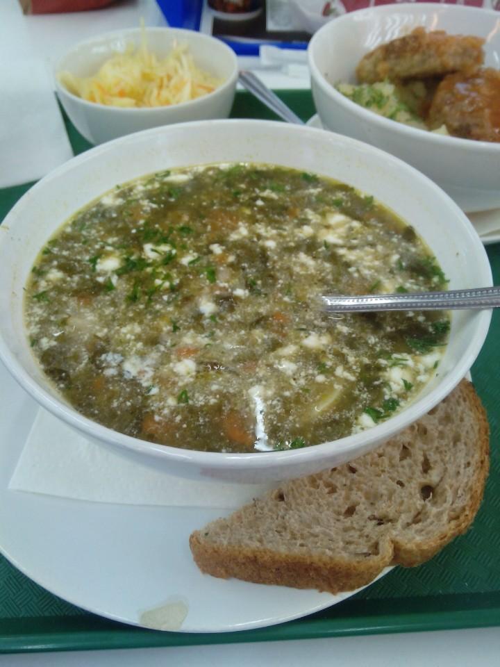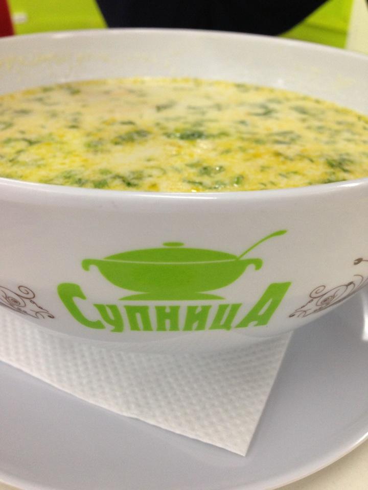 Шпинатный суп на 7из10, супница это точка в ресторанном дворике, холодный каркаде неплох, макароны с грибами супер. Рекомендую.Но это не то место гды вы можете поесть в спокойной обстановке это дворик