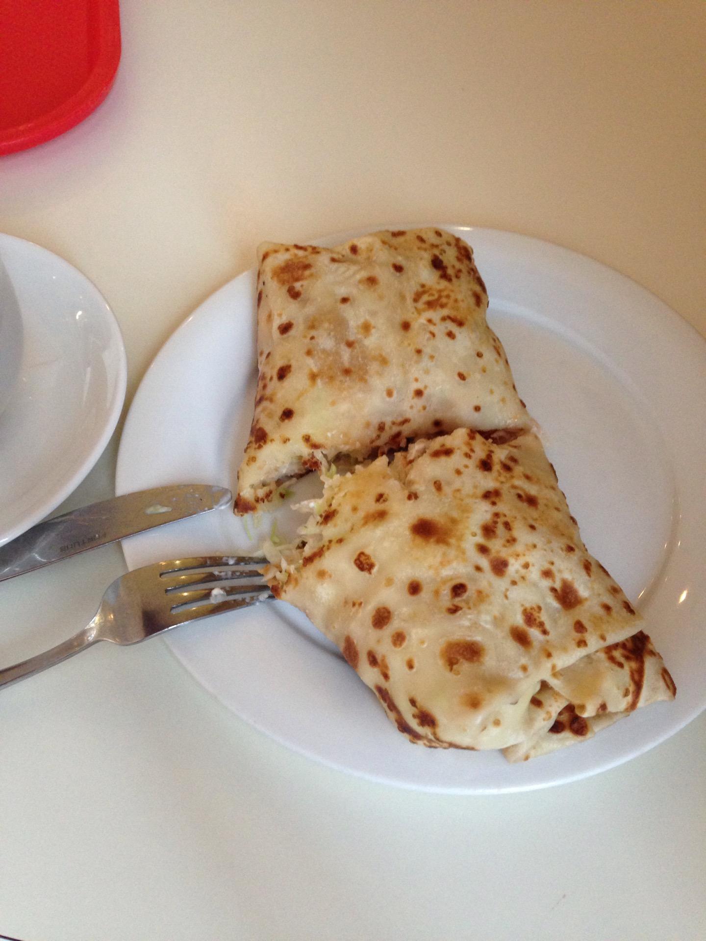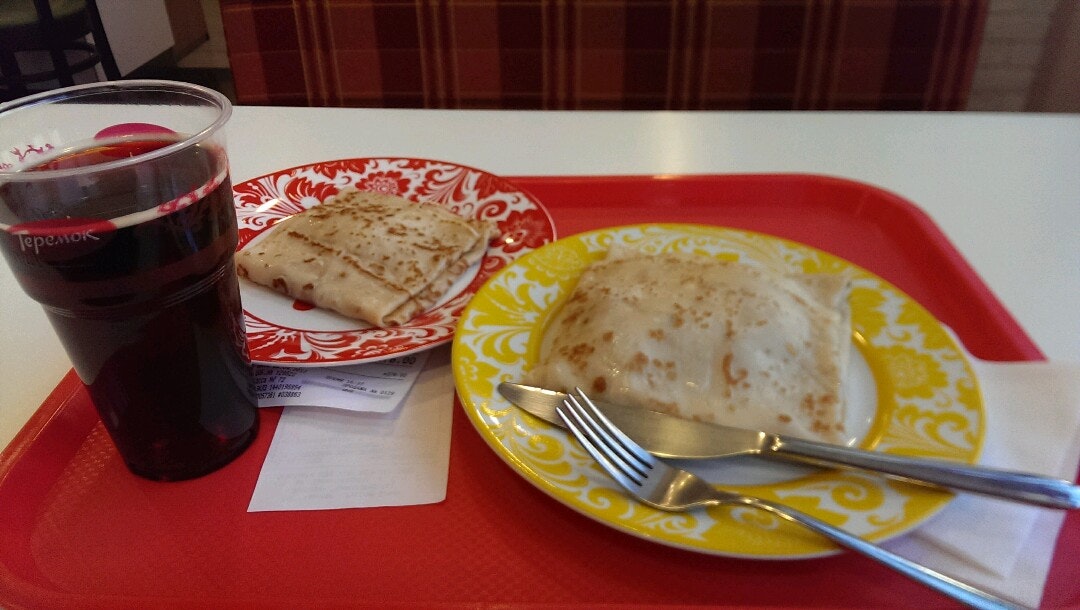 Всегда вкусные блинчики, и очень быстро готовят. Но стали экономить начинку😕
