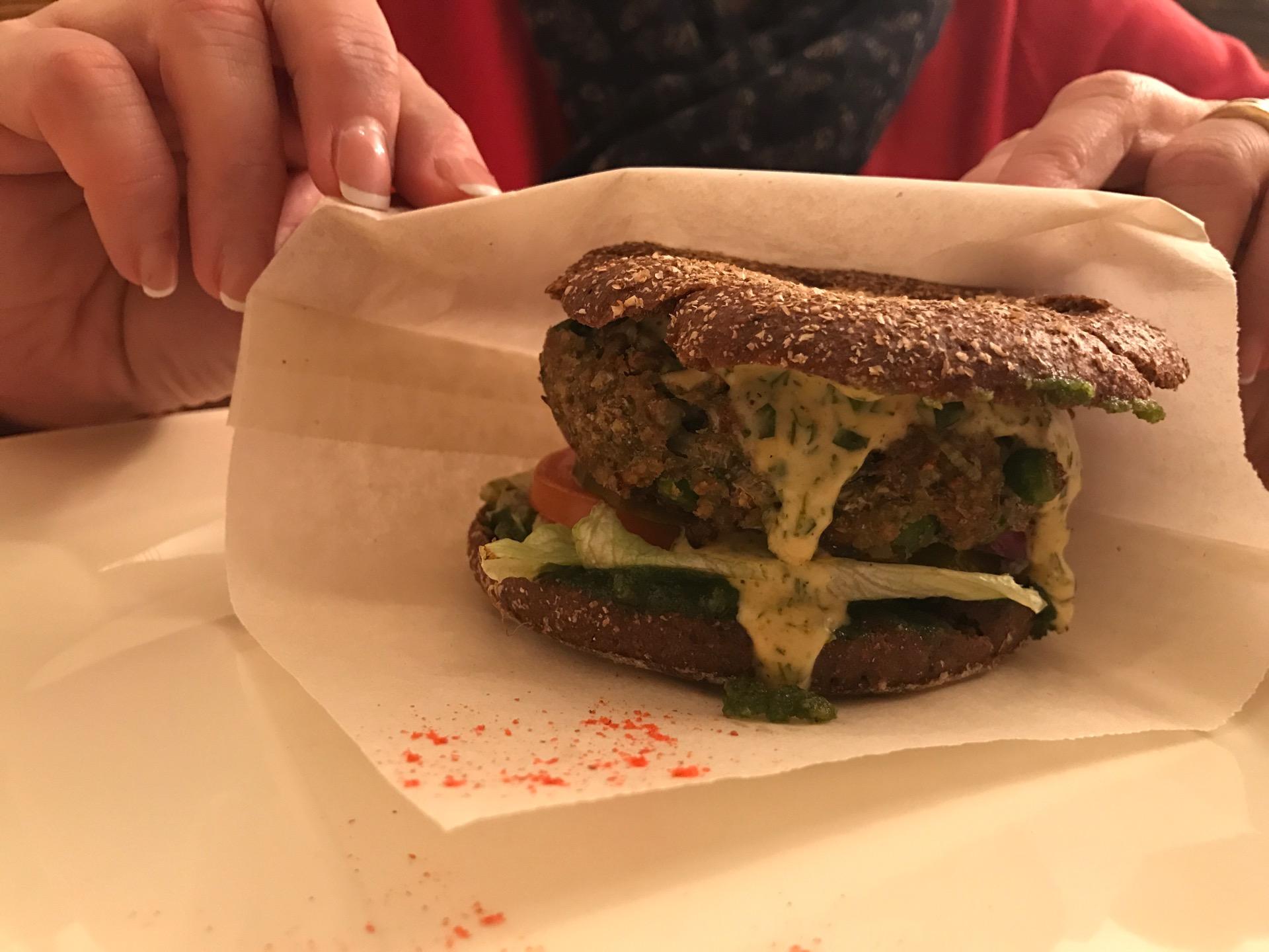 Фалафель, бургер, шаверма - не советую, суховато и булки с питой невкусные, размороженные. паста, варенники - вкусно. Атмосфера приятная. приносят воду перед едой