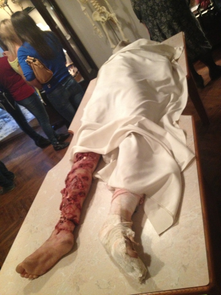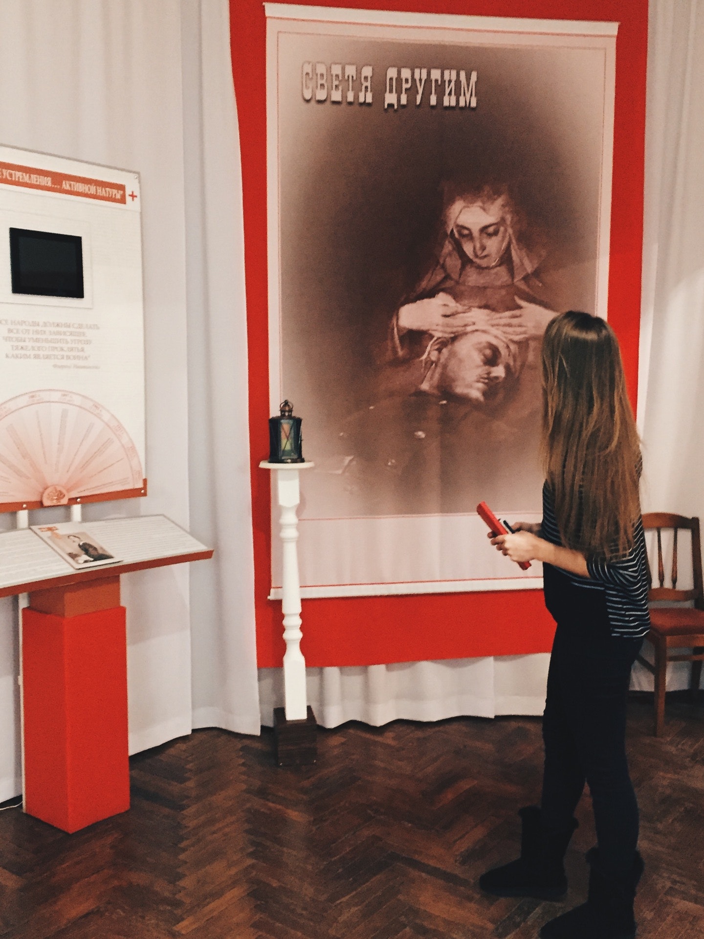 В музее предупреждают на входе в анатомический театр, а надо бы на входе в зал про войну в Чечне, где висят цветные фотографии ранений.