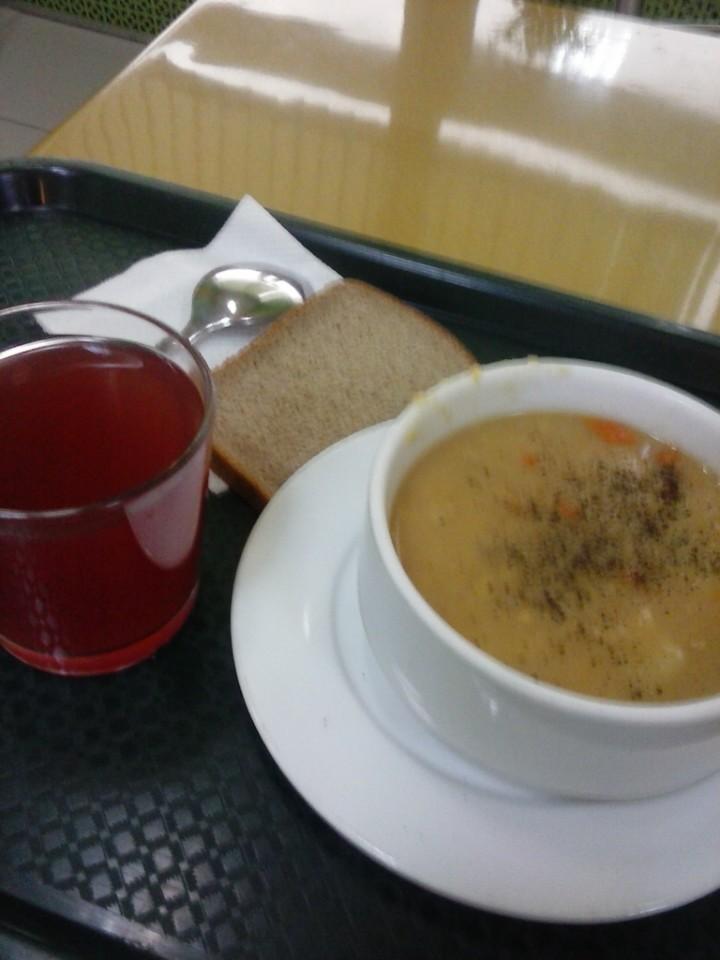 Еда вкусная и недорогая, выбор достаточно большой (порция жаркого стоит 120 руб). Дорогая только выпечка и кофе.